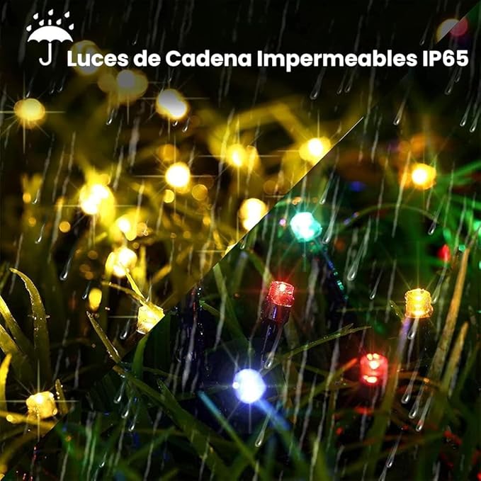 ☀️ Carga solar automática (8hs mínima) 🔋 Batería interna para brillar toda la noche 🌈 Luces RGB – 8 efectos (blanco cálido, multicolor, flash, degradado y más) 💧 IP65 resistente al agua 🌙 Sensor: se enciende con ausencia de luz de forma automática 📏 Disponible a partir de 20 metros para decorar cualquier espacio, especial para exteriores